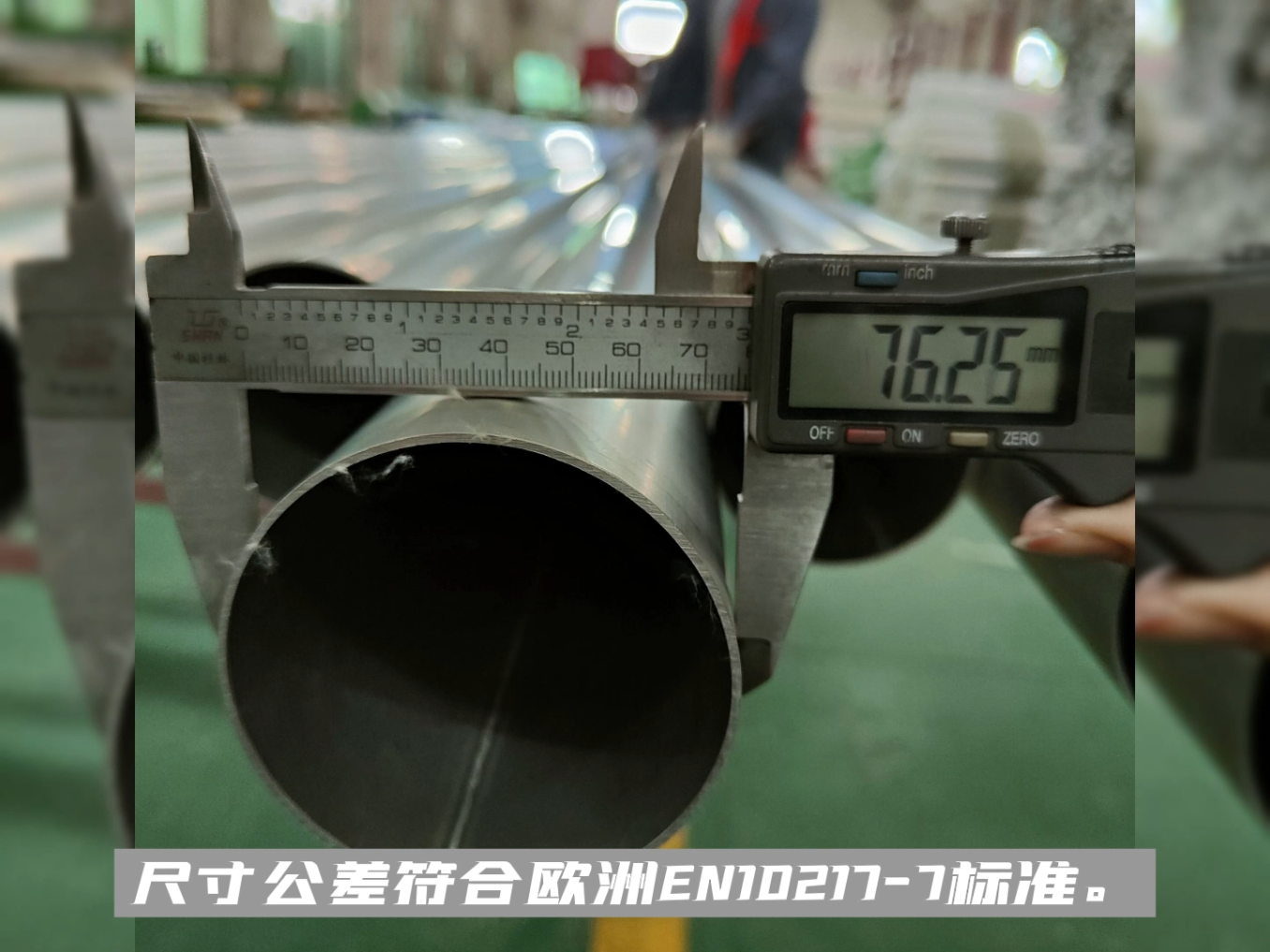讓我們看看恒合信公司的TP304L不銹鋼管,尺寸76.1x1.6mm。