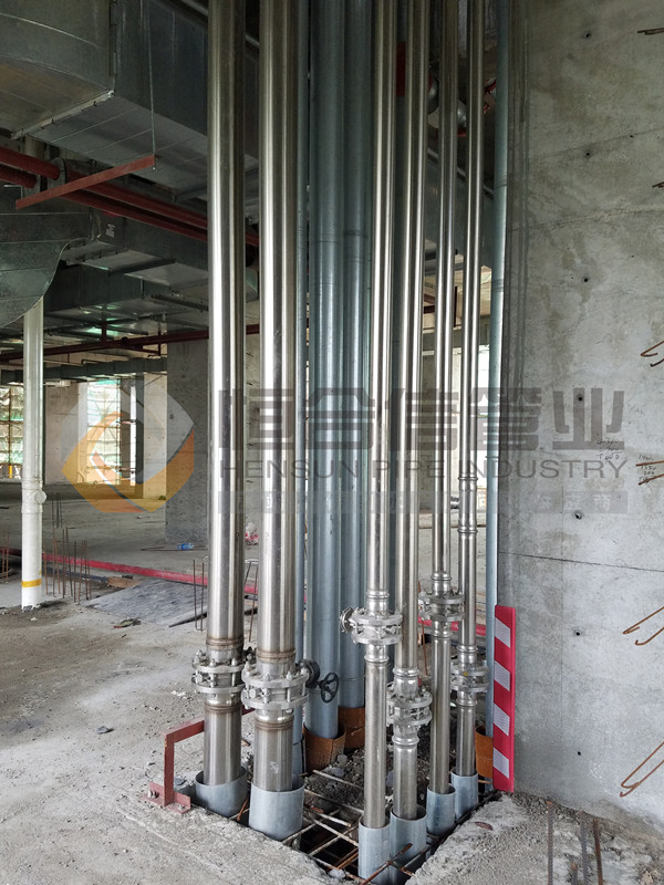 不銹鋼卡壓式管件施工完需要做水壓試驗然后卡壓薄壁不銹鋼水管管壁較薄,若按相同管徑施工規(guī)范規(guī)定的支架間距進行安裝,難以保證管道的強度。